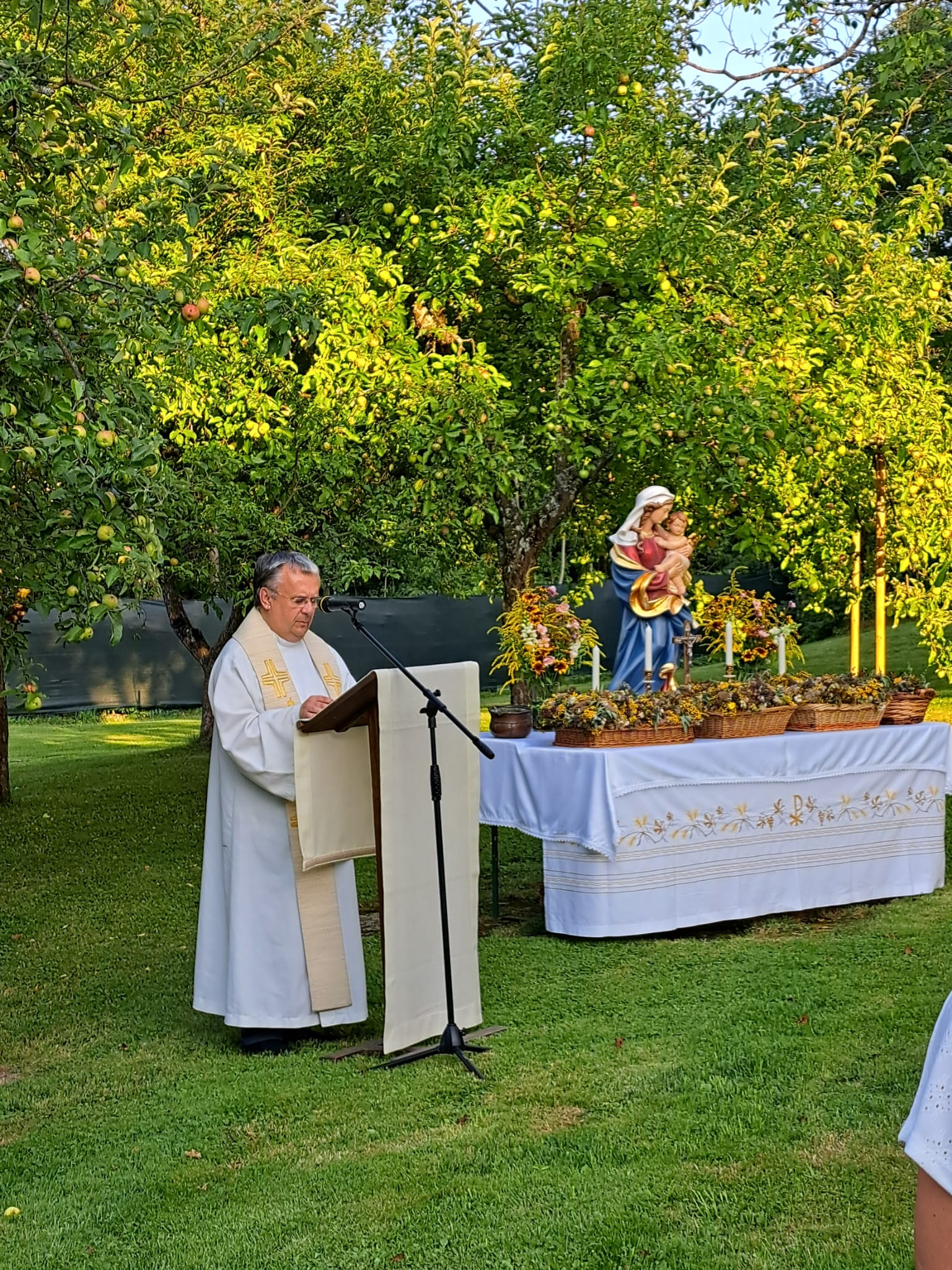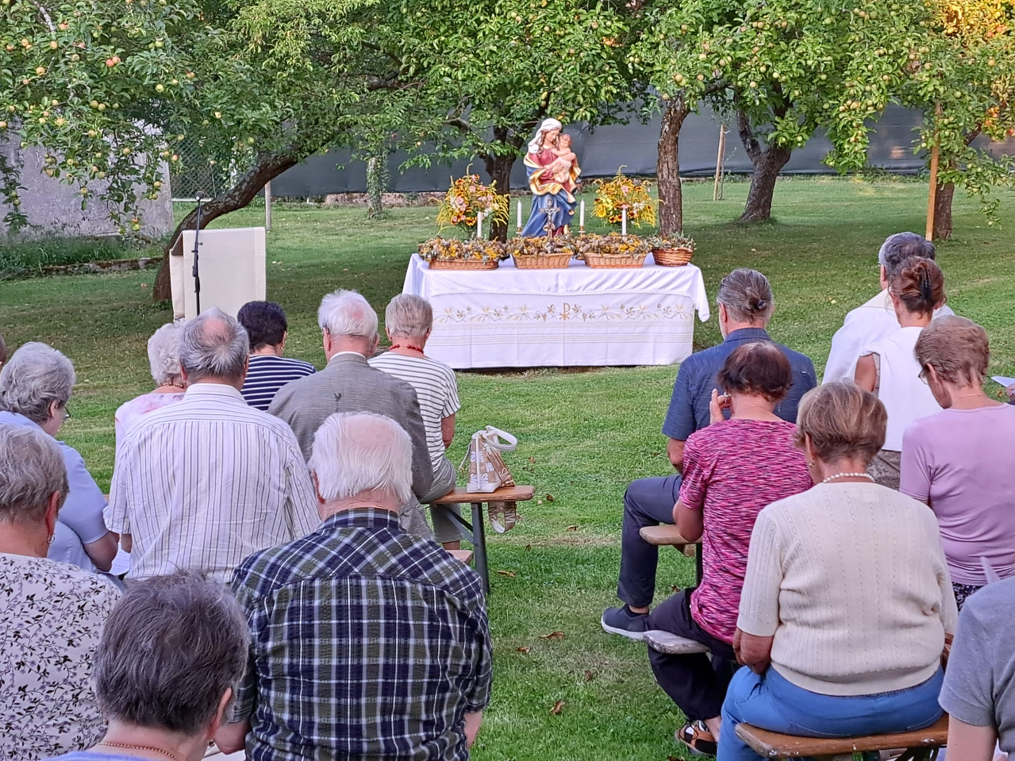 Am Abend des Hochfestes der Aufnahme Mariens in den Himmel fand in unserem Pfarrgarten eine Marienandacht mit Kräutersegnung statt. Zahlreiche Gläubige aus dem Pfarrverband folgten der Einladung und kamen bei strahlendem Sommerwetter in den Pfarrgarten und feierten mit Pfarrer Sliwa und Vikar Weissensteiner die Abendandacht. Im Anschluss waren alle zu einer Agape eingeladen.